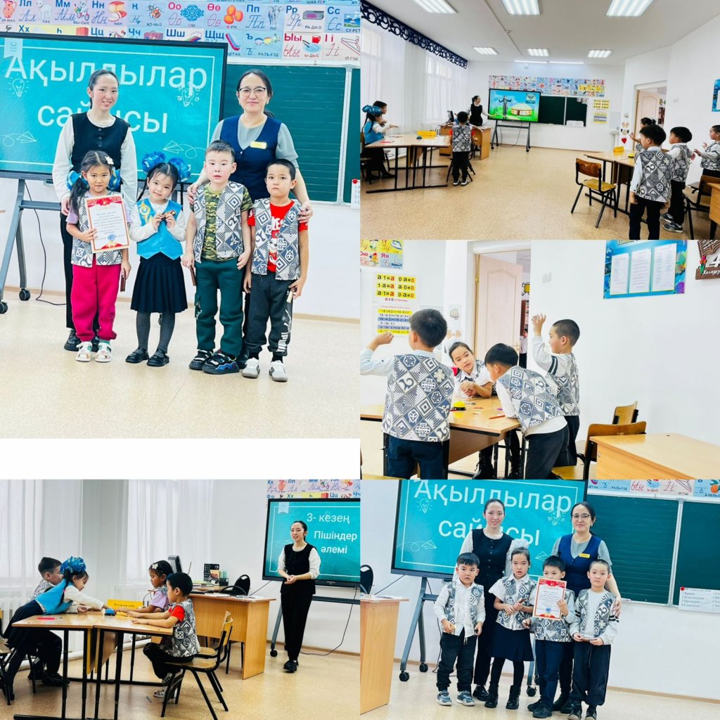 “Зерделі бала – ертеңгі дана” шағын орталық және мектепалды даярлық сыныптарының онкүндігі аясында 0 «Ә» сыныбында «Ақылдылар сайысы» атты интеллектуалды ойын түріндегі сыныптан тыс іс-шара өткізілді.