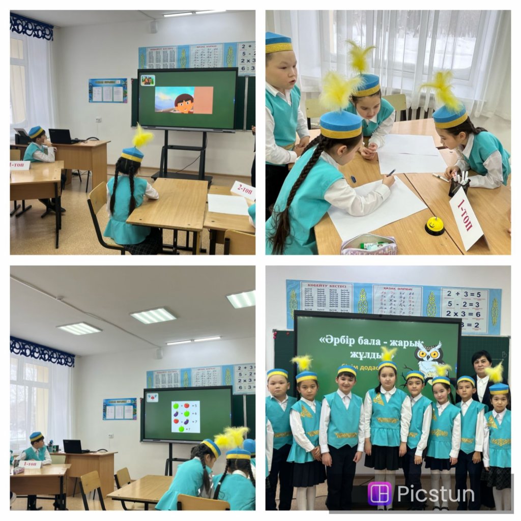 Бастауыш сынып онкүндігі аясында 2”ә” сыныбында математикадан “Элементтерінің саны бірдей жиындардың бірігуі. Көбейту» тақырыбында ашық сабақ өтті