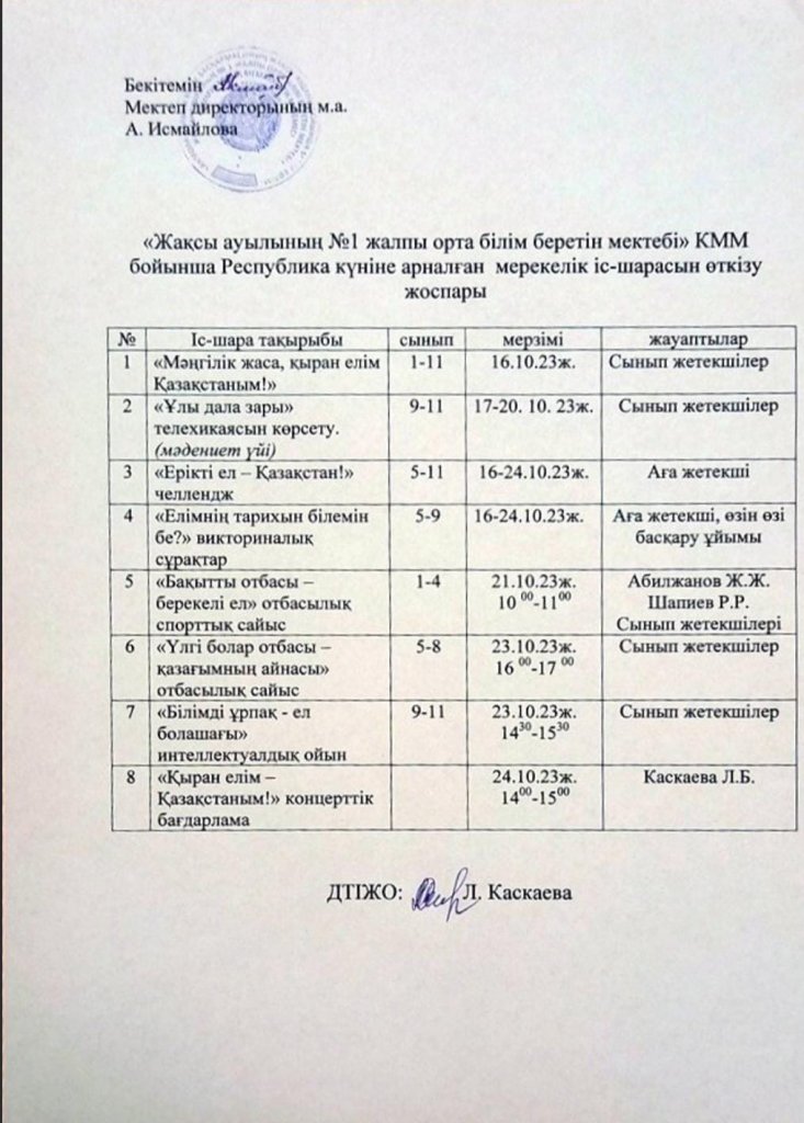 Республика күніне арналған мерекелік іс-шарасын өткізу жоспары
