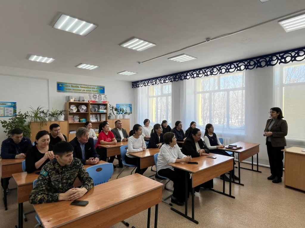 «Конституция және педагогикалық әдеп» тақырыбында дөңгелек үстел өтті. Кездесу барысында Қазақстан Республикасы Конституциясының негізгі ережелері, азаматтардың құқықтары мен міндеттері, сондай-ақ педагогикалық әдепті сақтау және мұғалімнің кәсіби жауапкершілігі мәселелері талқыланды.