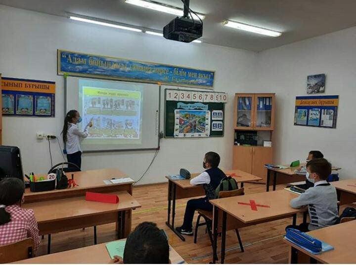 Балалар тақтаға назар аударайық .Тақтадан нені көріп тұрмыз (қала көрінісін, жол бағдаршам , жол белгілер) Балалар қала көшесімен келе жатып байқаған боларсыңдар ,айнала толы машиналар және жол белгілері өте көп. Олардың пішіндеріде , бояуларыда әртүрлі.Ал біздерге, машиналар жүріп келе жатқан жолды кесіп өтуге болады ма?  Бағдаршам, Жаяу жүргінші өтпесі т.б.