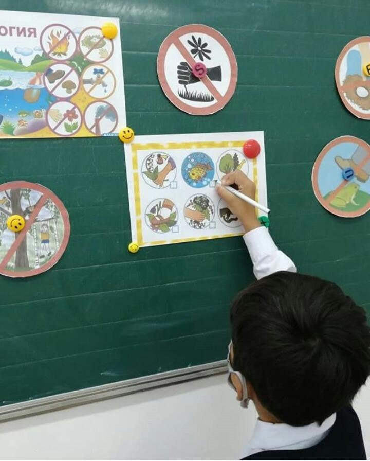 Білімділік: Қоршаған ортаның сапасы және ластануы туралы, сыртқы ортаның барлық факторларының бір-біріне байланыстылығы, оның ішінде бііз және табиғат байланыстылығын білуге үйрету;